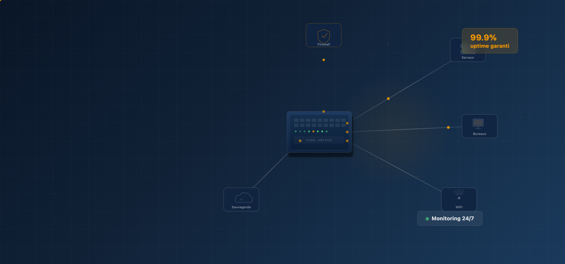 Conception, installation et maintenance de votre réseau local d’entreprise. Switchs, Wi-Fi, VLANs, câblage — tout est géré.